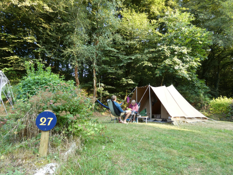 Our half-shaded pitches are located on the edge of the forest, they are spacious, bordered by diversed flowering hedges.